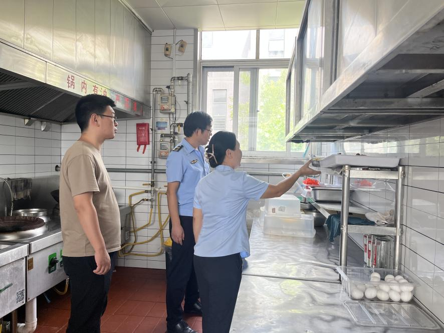曲阜师大后勤管理处讯 为深化市场监督管理局食品安全监管职责,保障新学期校园食品安全工作,9月3日上午,曲阜市市场监督管理局北关所所长帅东锋一行三人到学校开展食堂安全生产与食品安全检查指导。后勤管理处、生活服务中心及食堂相关负责人陪同检查。