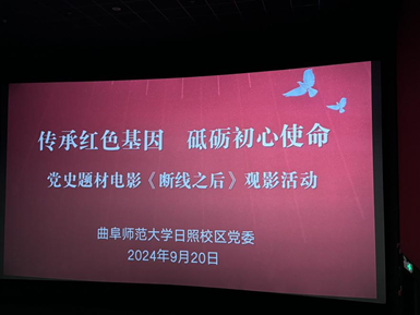 日照校区党委讯 为庆祝新中国成立75周年,深入学习贯彻党的二十大精神,加强日照校区党委党员干部爱国主义教育,9月20日日照校区党委组织开展了“传承红色基因 砥砺初心使命”主题观影活动,55名党员共同观看了党史题材电影《断线之后》。