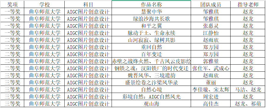 曲阜师大艺术设计学院讯 近日,第十六届蓝桥杯大赛专项赛暨首届中数杯 AIGC 数字内容创意设计大赛国赛获奖名单正式公布,万象城官方网站艺术设计学院参赛师生共获国奖14项。其中,一等奖4项,二等奖5项,三等奖5项。