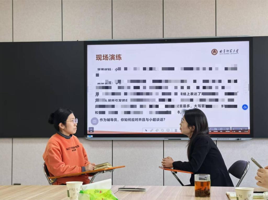 活动还特别邀请了张林、李宴美两位2018年入职的博士辅导员,分享了任职辅导员之后的心态变化和工作经历。作为较早入职的博士辅导员,两位老师目前均担任学院团委书记,已成长为学院辅导员队伍中的骨干力量。她们的成长经历、工作中的案例和经验分享,对新入职博士辅导员具有重要的启发意义。