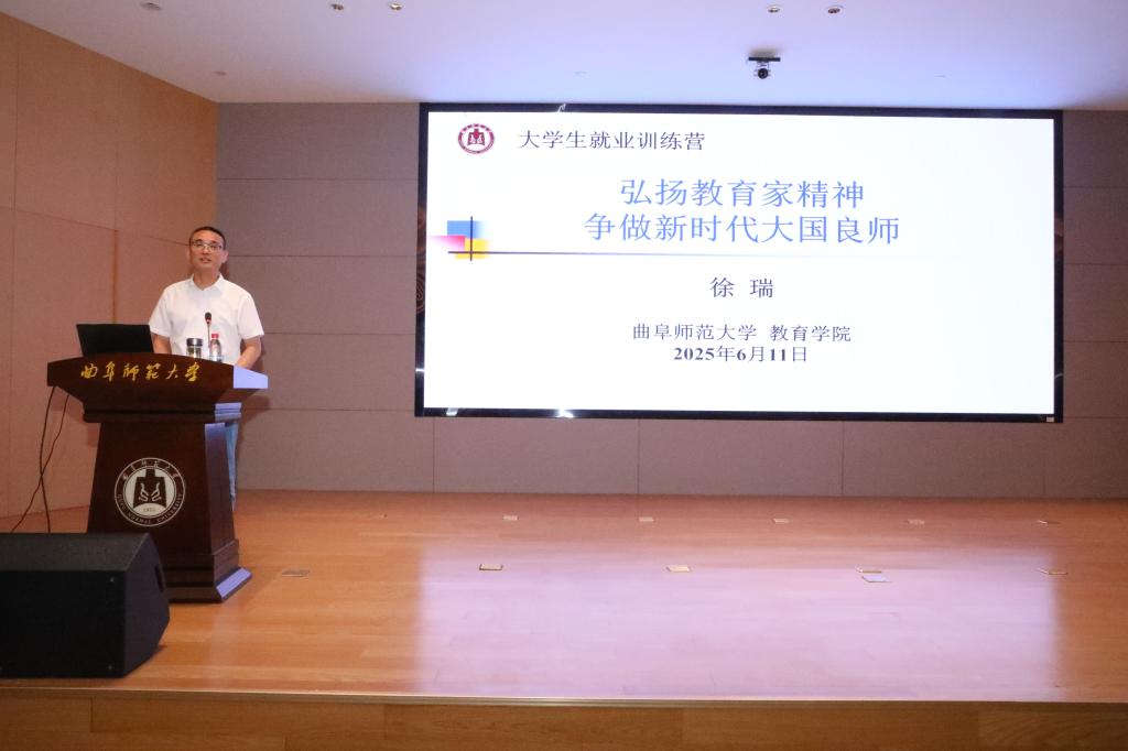 针对从教毕业生群体,训练营邀请教育科学研究院副院长徐瑞和德州一中副校长张志军作了专题报告,两位专家结合时代要求与鲜活案例,深入阐释了弘扬和践行教育家精神的丰富内涵、精神实质和实践要求,分享了如何在教学中创新、在管理中突破的宝贵经验。