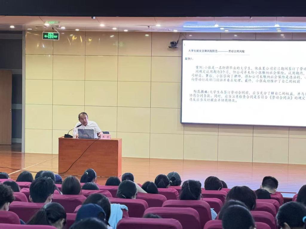 为提升毕业生的职业素养与法治意识,法学院副教授张强应邀为全体毕业生开展普法教育专题讲座。张强以典型案例为切入点,围绕劳动合同签订、劳动权益保护、职业道德规范等职场核心法律议题,进行了深入浅出的剖析与讲解,引导毕业生树立正确法治观念和职业意识,明确自身权利义务,做到依法履职、廉洁从业,为即将开启的职业生涯筑牢法治根基。