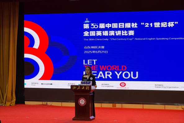 翻译学院讯  6月21日,第30届中国日报社“21世纪杯”全国英语演讲比赛山东地区决赛圆满落幕。此次比赛吸引了来自山东省内多所高校的43名选手同台竞技。曲阜师大翻译学院2022级商英专业赵伊朵同学在张巍老师指导下获山东省赛区一等奖,晋级全国赛。