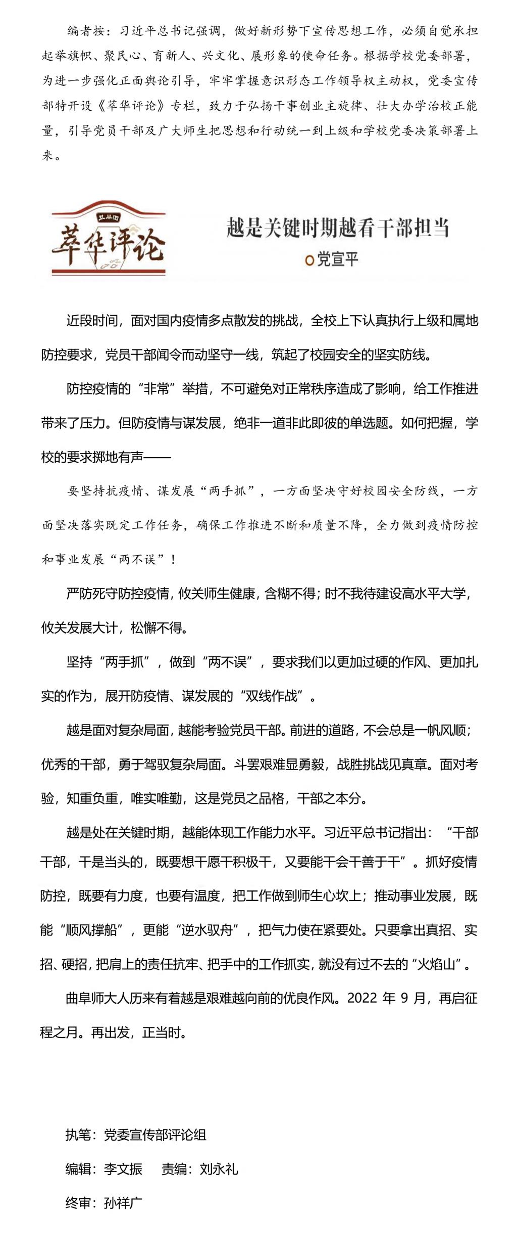文:党委宣传部评论组