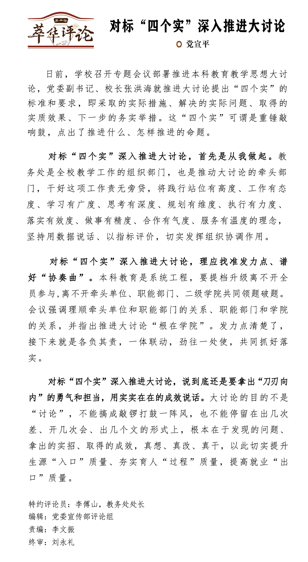 【萃华评论】对标“四个实”深入推进大讨论