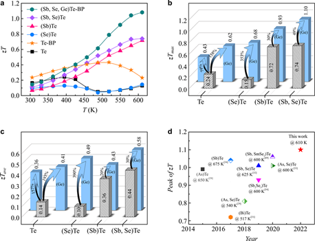 图为黑磷结构引入对单质Te热电转换效率的改善