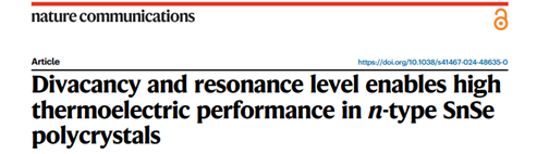 科学技术处、物理与工程学院讯  近期,万象城官方网站物理工程学院高压科学研究团队张永胜教授与南京理工大学唐国栋教授和西安交通大学吴海军教授合作,在n型多晶SnSe热电性能研究方面取得新进展。研究人员通过理论和实验合作实现了n型多晶SnSe热电性能的突破,解决了热电材料领域内长期困扰的技术难题,为SnSe材料的商业化应用打下了坚实的基础。相关成果以“Divacancy and resonance level enables high thermoelectric performance in n-type SnSe polycrystals”为题(全文链接:https://www.nature.com/articles/s41467-024-48635-0),发表于《自然-通讯》(Nature Communications, 15, 4231, 2024),张永胜教授为文章第一通讯作者。