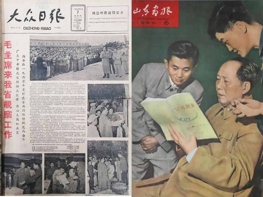 1960年5月4日,这是一个令曲阜师范学院全体师生都难以忘怀的日子,毛主席亲临山东视察。在视察过程中,《公社数学》一书进入了毛主席的视野,并得到了他的批阅和赞赏,伟大领袖毛主席在翻阅此书时,一边认真地看,一边关切地询问相关情况。5月7日,《大众日报》头版刊登了毛泽东主席审阅曲阜师范学院数学系师生编写的《公社数学》的珍贵照片。这张照片定格的不仅是领袖对高校科研实践的关怀,更是曲园人将数学理论扎根乡土、服务农业生产的创新印记——毛主席对书中的首创精神的肯定,成为镌刻在学校发展史上的高光时刻。