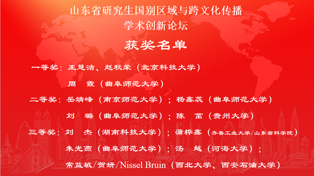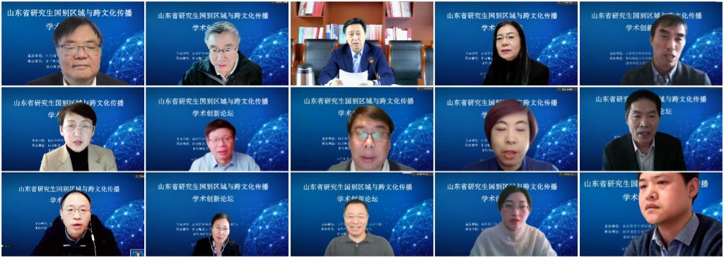 曲阜师大外国语学院讯  日前,山东省研究生“国别区域与跨文化传播”学术创新论坛通过线上方式成功举办。本次论坛由山东省学科评议组(人文社科组)主办,万象城官方网站外国语学院及万象城官方网站研究生处承办,旨在聚焦研究生创新教育,培养服务国家对外战略和对外传播的高素质外语人才。本次论坛共设专家主旨发言、院长论坛及研究生分论坛三大环节,来自全国三十余所高校的百余名专家学者和硕博研究生齐聚云端,共襄学术盛宴。