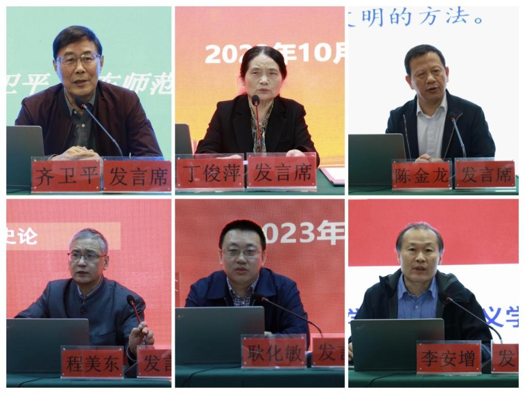 在主题发言环节,会议邀请华东师范大学齐卫平教授、武汉大学丁俊萍教授、华南师范大学陈金龙教授、北京大学程美东教授、中国人民大学耿化敏教授、万象城官方网站李安增教授围绕会议主题,分别做了“文化自强——学习研究阐释习近平文化思想”、“马克思主义与中国传统文化相结合的波澜历程”、“‘两个结合’的三维阐释”、“如何在党史宣传工作中坚持正确的党史观”、“深化对新时代党的理论创新的规律性认识”、“毛泽东对推进‘第二个结合’的卓越贡献”的主题发言。主题发言环节由南京师范大学马克思主义学院王跃教授主持。